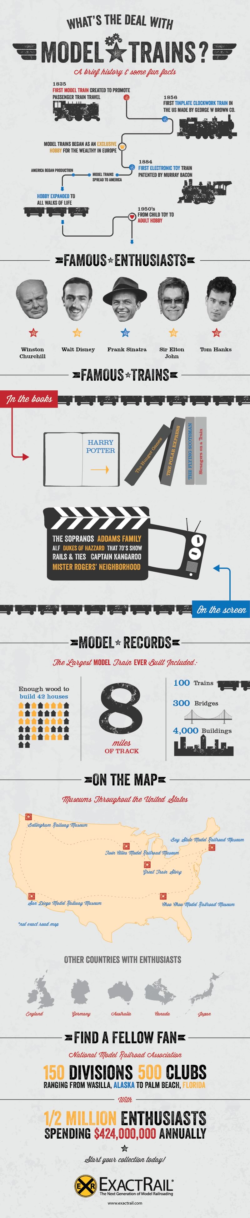 Model trains are toys for Men. You – train lover – find here a brief history, facts about the worldwide community and some celebrity hobbyists.